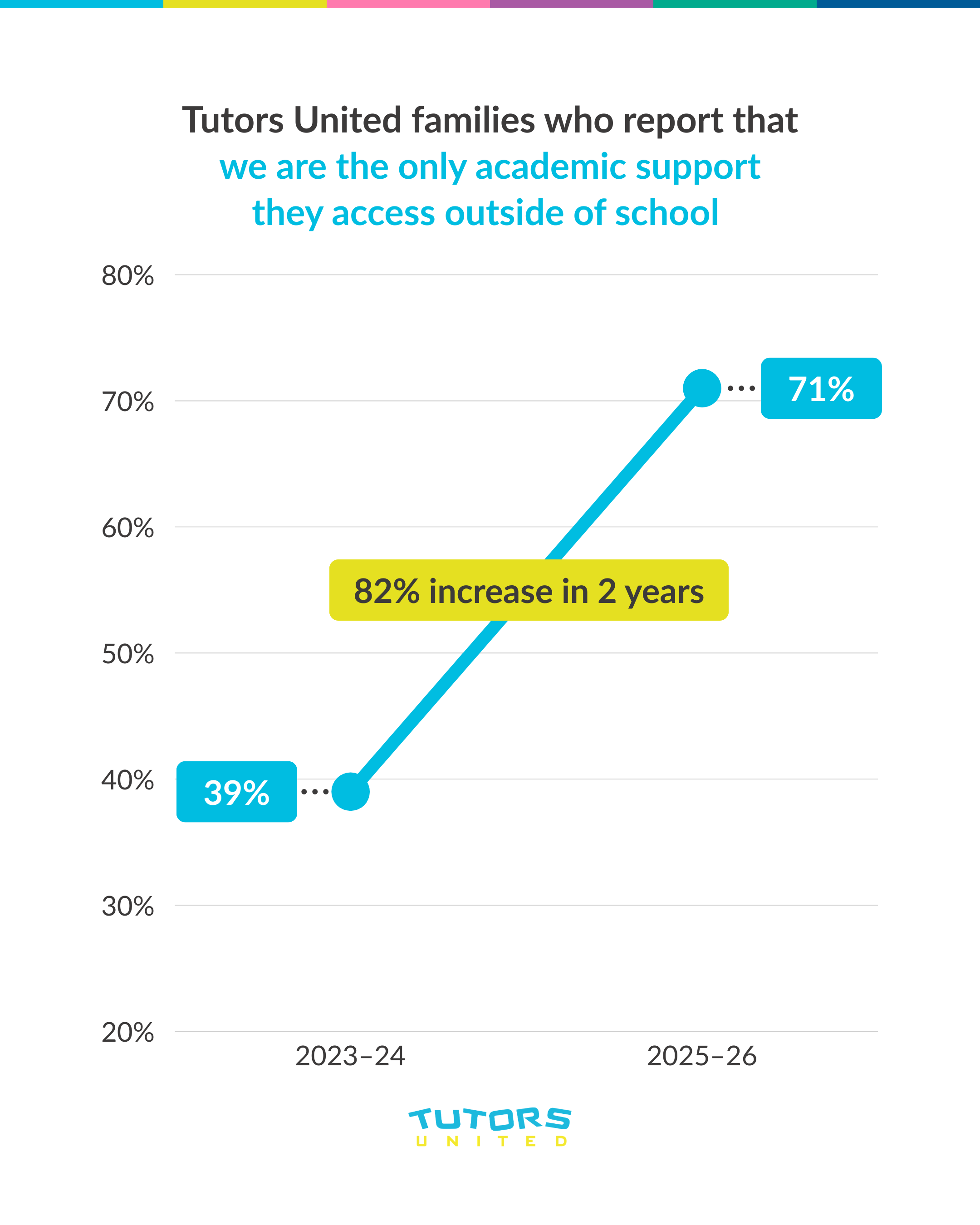 Tutors United families who report that we are the only academic support they access outside of school has increased by 82% in just two years.